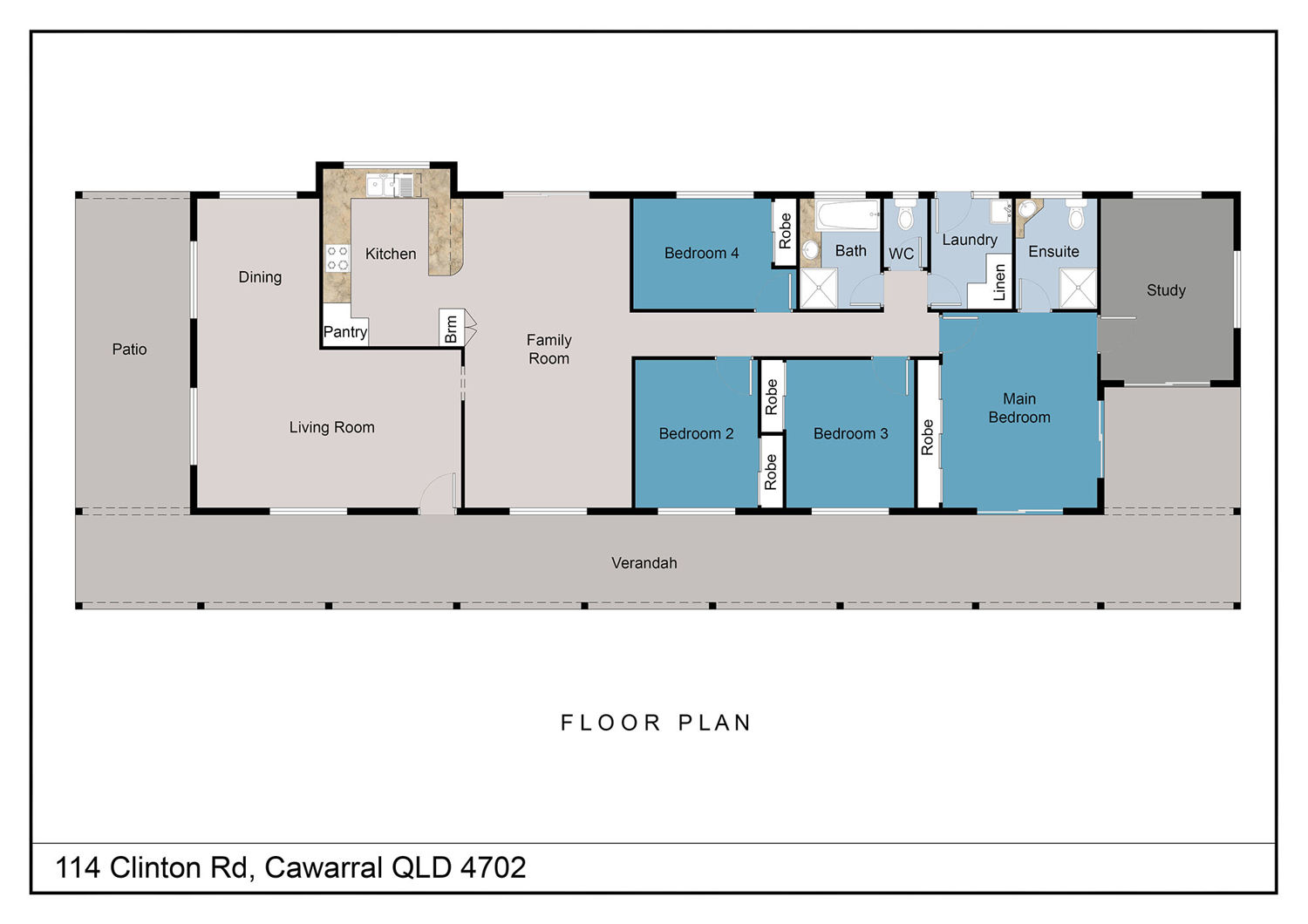 * Split system Air Conditioning to Study/Main Bedroom, Living/Dining Room