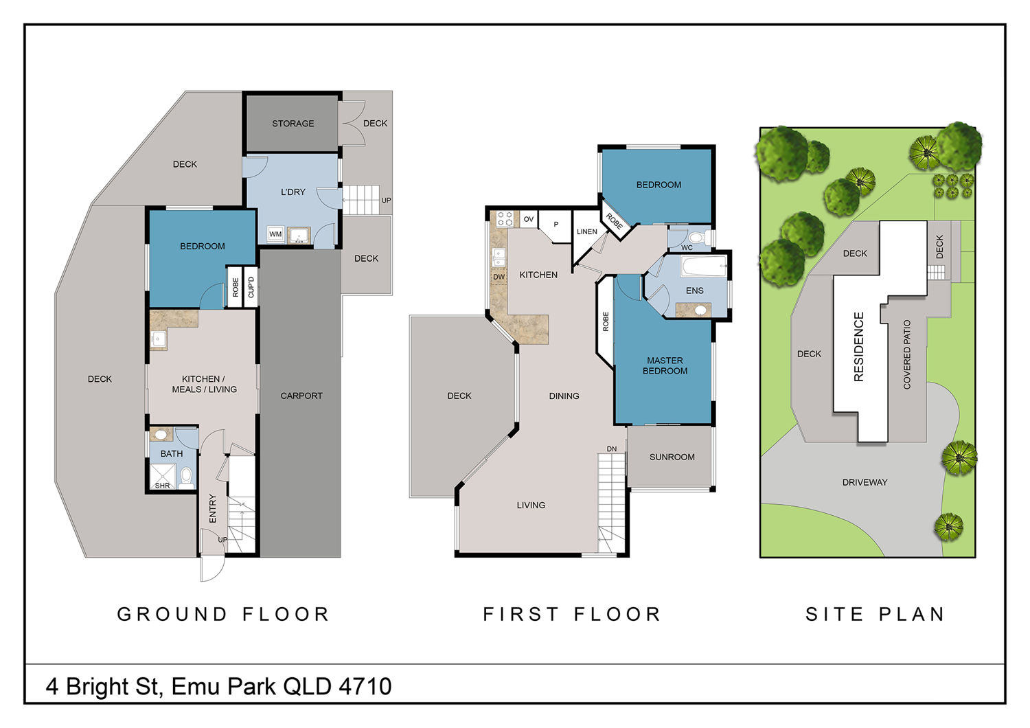 * Master Bedroom: A peaceful retreat with built-in robes and easy access to the front deck.