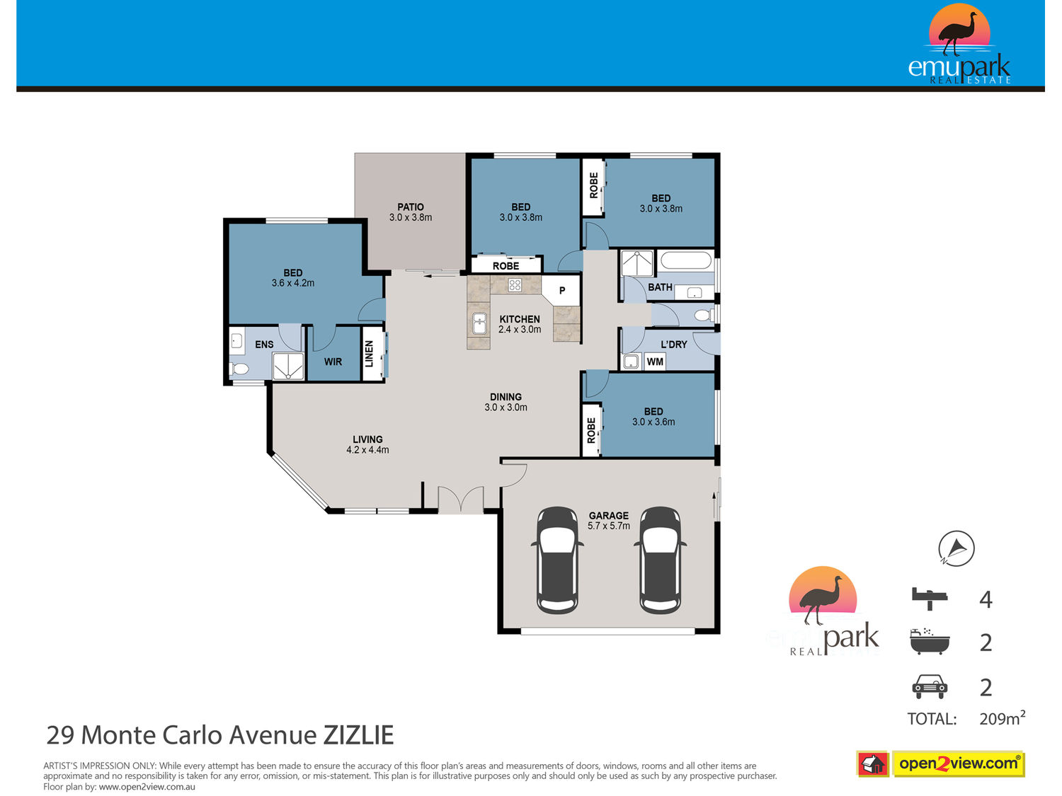- 4 good sized bedrooms all built in with WIR and ensuite to the main