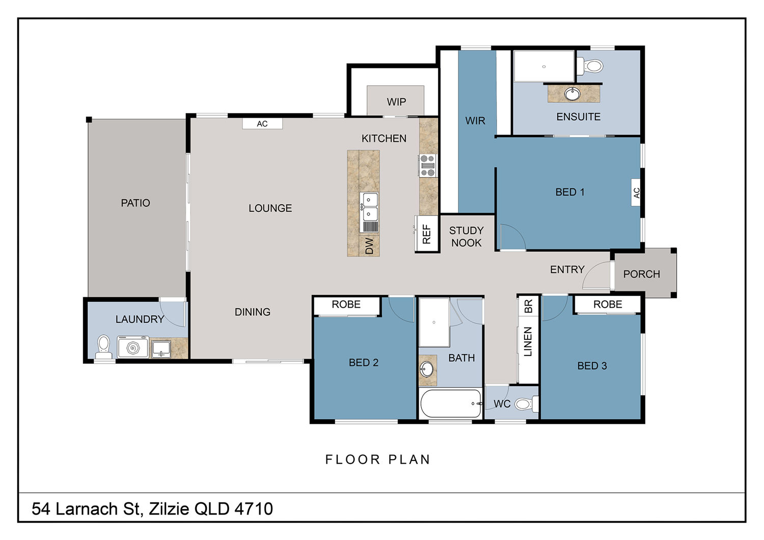 * Spacious Master Bedroom with an Ensuite, Walk In Robe and Split system Air Conditioning